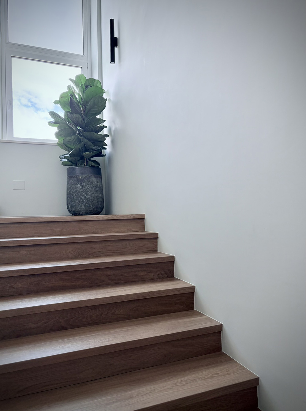Il pavimento Déco Clap, posato anche sulla scala a copertura di un vecchio marmo, crea continuità tra i diversi ambienti e, nella colorazione “Rub”, fornisce una base calda e neutra per l’arredamento.