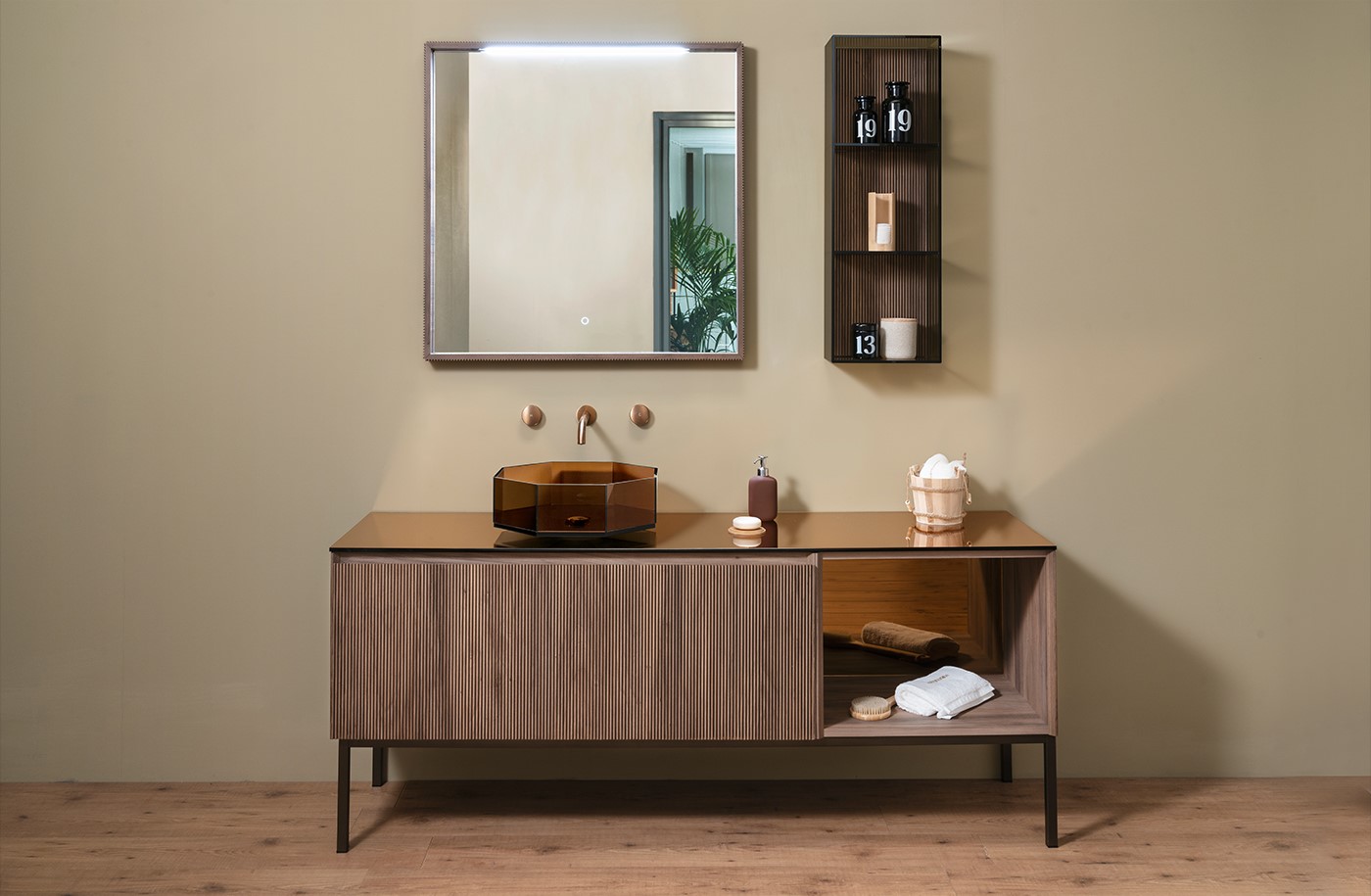 Ideale per bagni contemporanei che cercano una geometria decisa e per i bagni classici rivisitati che cercano un effetto scultoreo e artigianale.