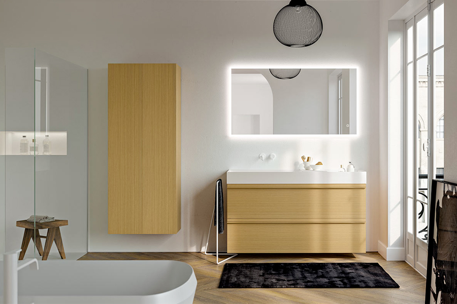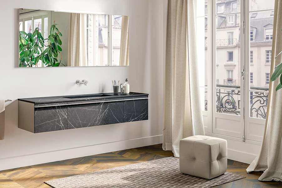 La collezione si completa con un grande numero di finiture e materiali che le conferiscono un carattere unico. Forme pure, spessori rastremati, dettagli tecnici e materiali di pregio sono le basi di questa collezione. Grandi cassetti con spazi organizzati e specchi contenitore per riporre qualsiasi oggetto del vostro vivere quotidiano, innumerevoli anche gli accessori interni ed esterni.